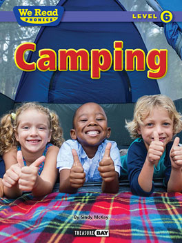 Beginning decodable reader to support phonics skills, which includes sight word and phonics games. Camping can be lots of fun! You can sleep in a tent and eat outside. If you went camping, would you want to take a hike or float in a boat? Or maybe both!